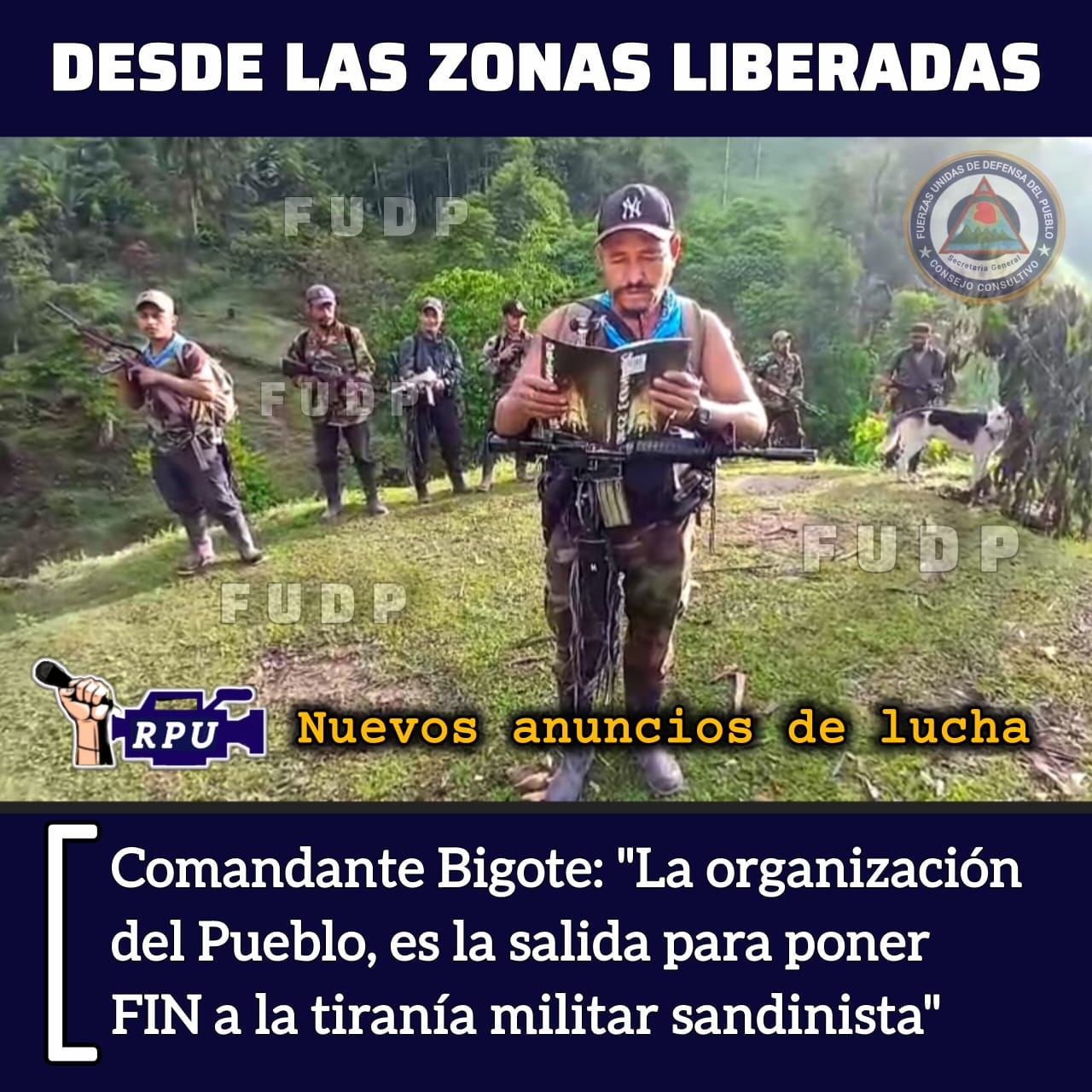 El Jefe del Estado Mayor Conjunto de las Fuerzas Unidas de Defensa del Pueblo (FUDP) dará a conocer en los próximos días, importantes anuncios sobre la cruzada patriótica de resistencia para el derrocamiento definitivo de la dictadura militar sandinista.